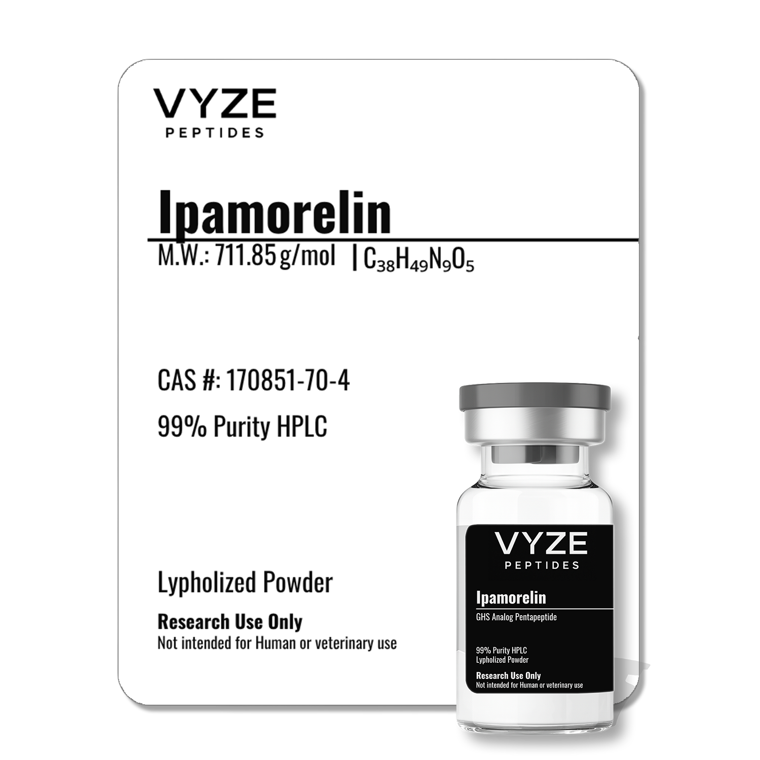 Intended for Research Use Only Ipamorelin is a selective growth hormone secretagogue studied for its targeted ghrelin receptor activity. Unlike other secretagogues, Ipamorelin is notable for its minimal effect on cortisol and prolactin, making it ideal for isolating GH-related responses in controlled test environments. In research settings, Ipamorelin is often used to explore GH pulsatility, peptide feedback systems, and metabolic impact through non-lipolytic pathways. It is a staple compound in laboratories investigating hormone response selectivity and receptor affinity mapping.
