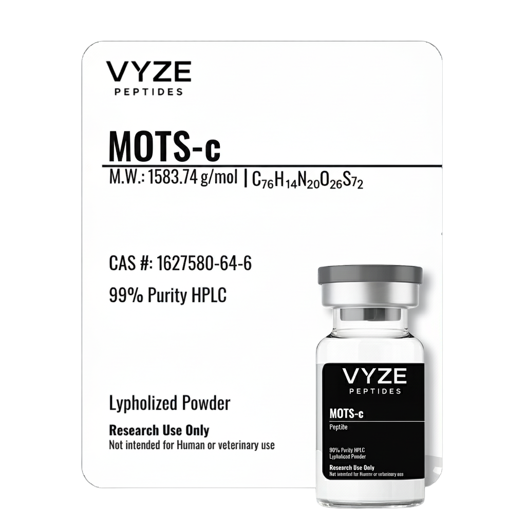 For Research Use Only – Not for Human or Veterinary Use MOTS-c is a synthetic mitochondrial-derived peptide modeled after a naturally occurring sequence encoded within mitochondrial DNA. It has been widely examined in research environments for its potential influence on metabolic regulation, cellular stress responses, and mitochondrial efficiency, particularly in studies involving energy homeostasis and insulin signaling. Laboratories often use MOTS-c to explore its role in AMPK pathway activation, exercise-mimetic effects, and its impact on cellular resilience under metabolic, oxidative, and inflammatory stress conditions.