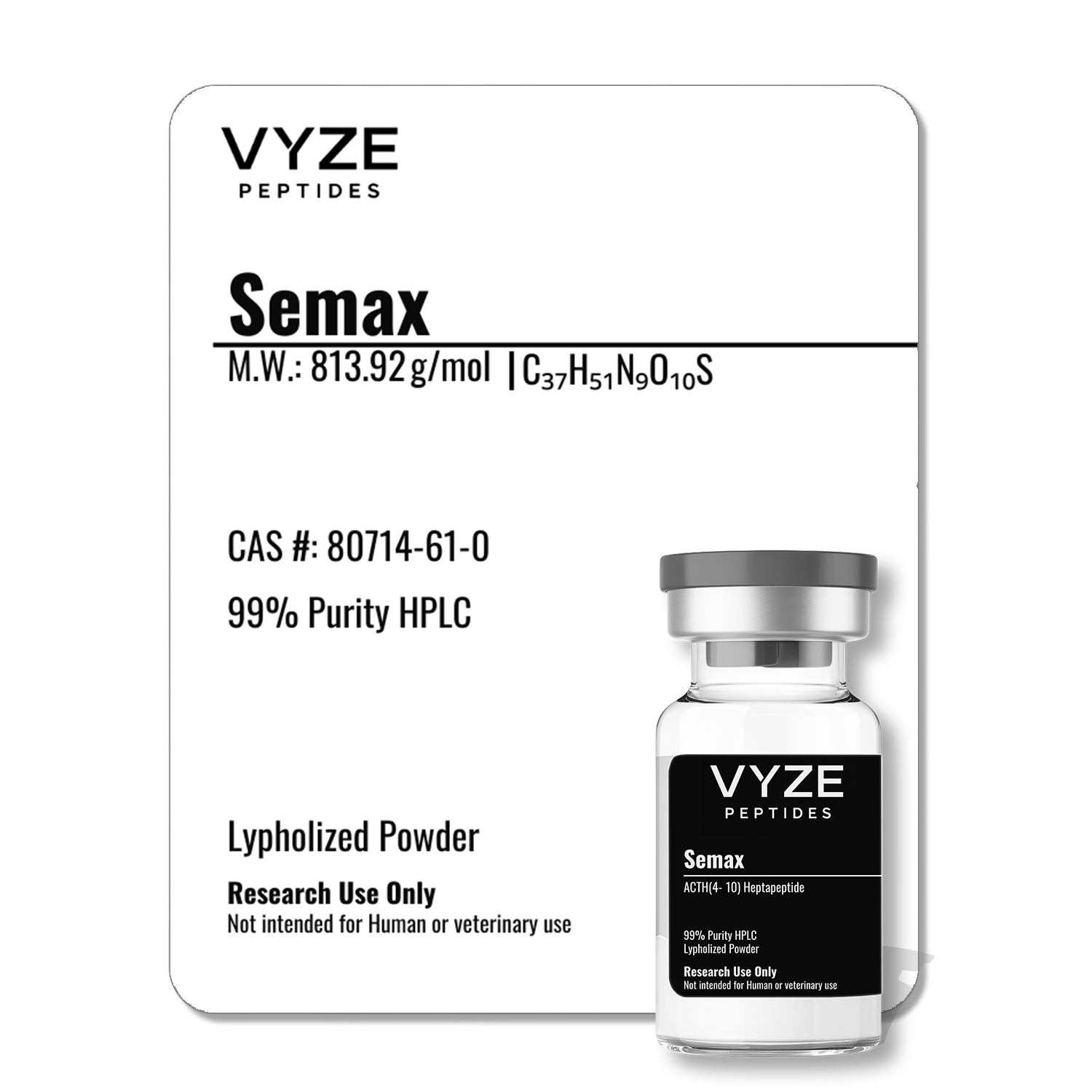For Research Use Only – Not for Human or Veterinary Use Semax is a synthetic heptapeptide derived from adrenocorticotropic hormone (ACTH) fragments, commonly studied for its role in neuroprotection, cognitive modulation, and central nervous system signaling. It is often evaluated in research models focused on memory formation, neuroplasticity, and stress-related response pathways. In vitro, Semax has been shown to influence brain-derived neurotrophic factor (BDNF) expression and other regulatory peptides involved in learning and neural regeneration. Its unique structure and receptor selectivity make it a promising tool in neurological and behavioral research environments.